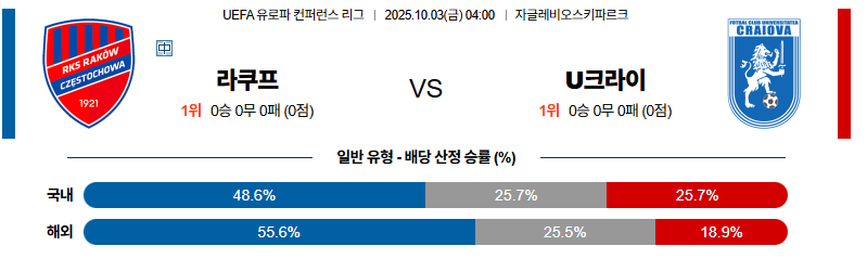 라코프 대 크라이오바 UEFA유로파컨퍼런스리 10월03일 맞대결 생중계, 스포츠중계, 스포츠분석