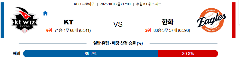 KT 대 한화 KBO 10월03일 맞대결 생중계, 스포츠중계, 스포츠분석