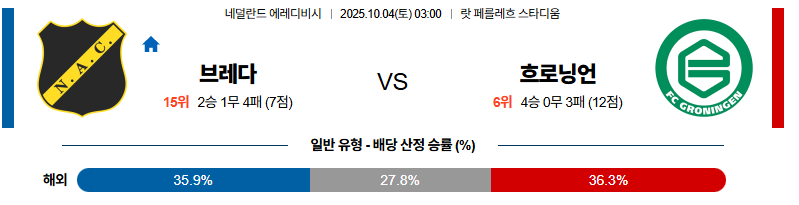 브레다 대 흐로닝언 에레디비지 10월04일 맞대결 생중계, 스포츠중계, 스포츠분석