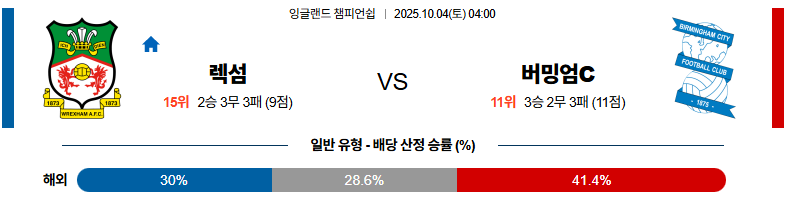 렉섬 대 버밍엄시티 잉글랜드챔피언쉽 10월04일 맞대결 생중계, 스포츠중계, 스포츠분석
