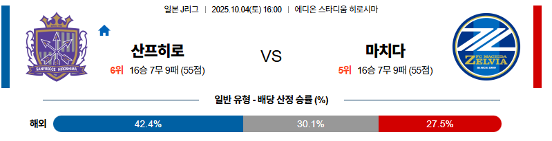 산프레체히로시마 대 마치다 J리그1 10월04일 맞대결 생중계, 스포츠중계, 스포츠분석