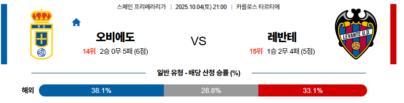 오비에도 대 레반테 라리가 10월04일 맞대결 생중계, 스포츠중계, 스포츠분석