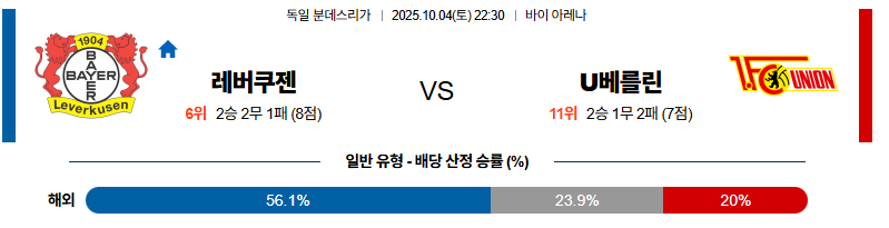 레버쿠젠 대 우니온베를린 분데스리가 10월04일 맞대결 생중계, 스포츠중계, 스포츠분석