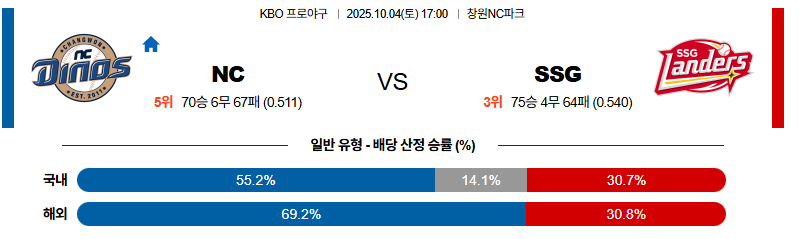 NC 대 SSG KBO 10월04일 맞대결 생중계, 스포츠중계, 스포츠분석