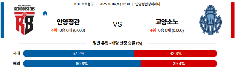 안양정관장 대 고양소노 KBL 10월04일 맞대결 생중계, 스포츠중계, 스포츠분석