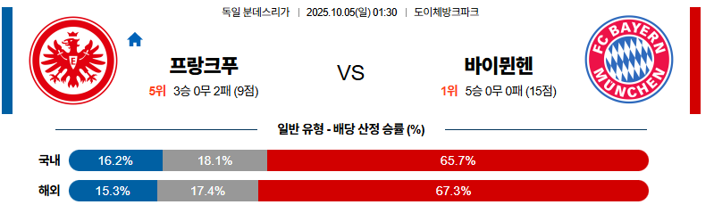 프랑크푸르트 대 바이에른뮌헨 분데스리가 10월05일 맞대결 생중계, 스포츠중계, 스포츠분석