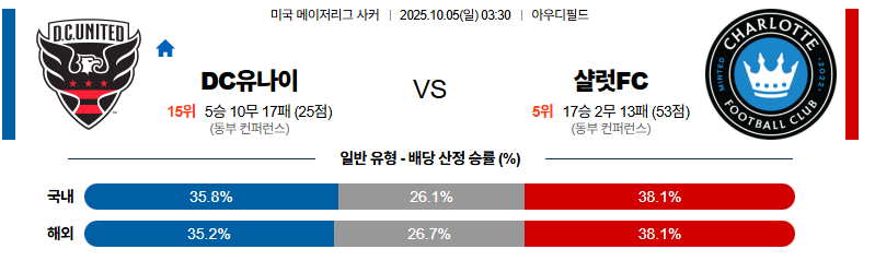 DC유나이티드 대 샬럿 메이저리그사커 10월05일 맞대결 생중계, 스포츠중계, 스포츠분석