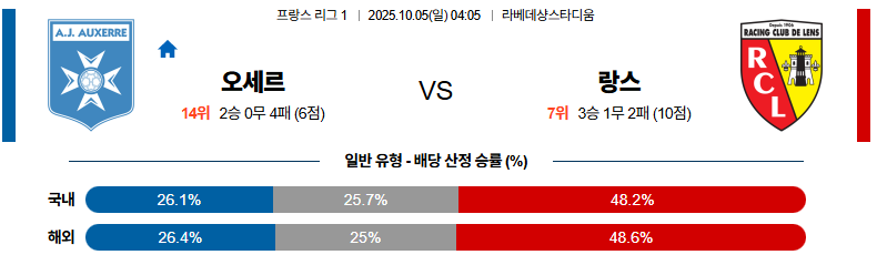 오세르 대 랑스 리그앙 10월05일 맞대결 생중계, 스포츠중계, 스포츠분석