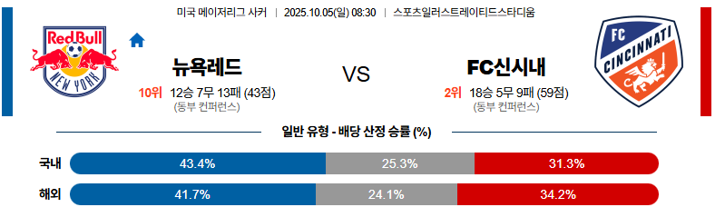뉴욕레드불 대 신시내티 메이저리그사커 10월05일 맞대결 생중계, 스포츠중계, 스포츠분석