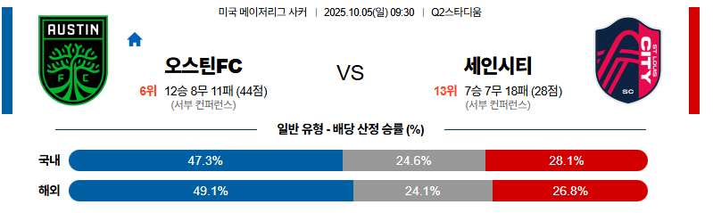 오스틴 대 세인트루이스 메이저리그사커 10월05일 맞대결 생중계, 스포츠중계, 스포츠분석