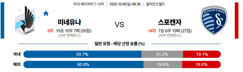 미네소타 대 켄자스시티 메이저리그사커 10월05일 맞대결 생중계, 스포츠중계, 스포츠분석