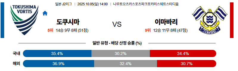도쿠시마 대 이마바리 J리그2 10월05일 맞대결 생중계, 스포츠중계, 스포츠분석