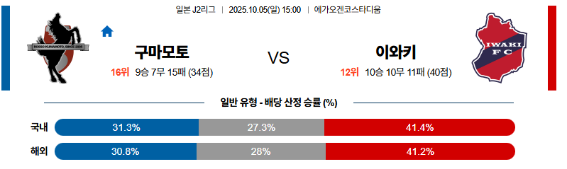 구마모토 대 이와키 J리그2 10월05일 맞대결 생중계, 스포츠중계, 스포츠분석