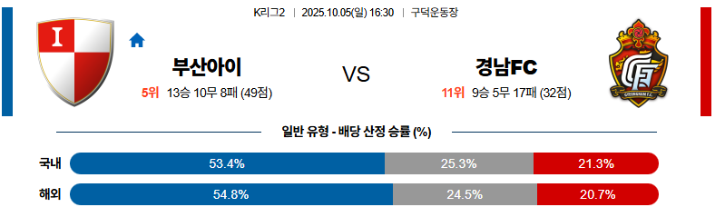부산 대 경남 K리그2 10월05일 맞대결 생중계, 스포츠중계, 스포츠분석
