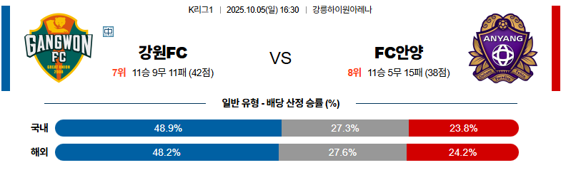 강원 대 안양 K리그1 10월05일 맞대결 생중계, 스포츠중계, 스포츠분석