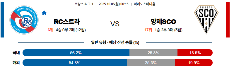 스트라스부르 대 앙제 리그앙 10월06일 맞대결 생중계, 스포츠중계, 스포츠분석