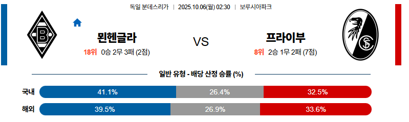 글라트바흐 대 프라이부르크 분데스리가 10월06일 맞대결 생중계, 스포츠중계, 스포츠분석