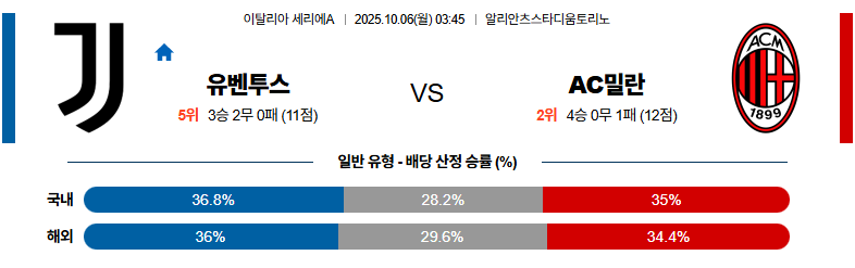 유벤투스 대 AC밀란 세리에A 10월06일 맞대결 생중계, 스포츠중계, 스포츠분석