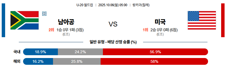남아프리카공화국 대 미국 U20월드컵 10월06일 맞대결 생중계, 스포츠중계, 스포츠분석
