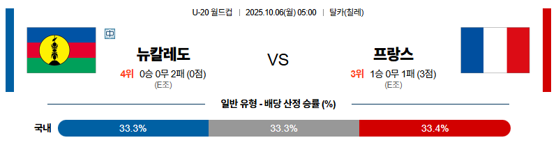 뉴칼레도니아 대 프랑스 U20월드컵 10월06일 맞대결 생중계, 스포츠중계, 스포츠분석