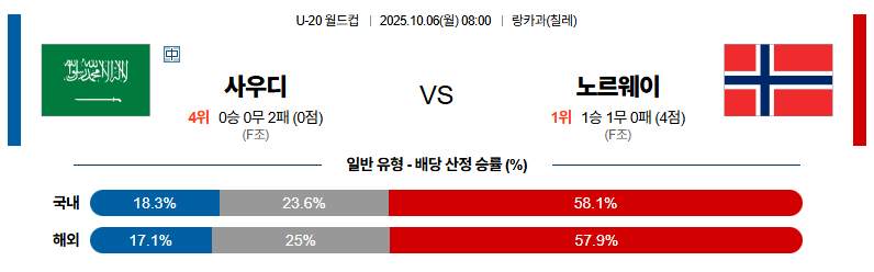 사우디아라비아 대 노르웨이 U20월드컵 10월06일 맞대결 생중계, 스포츠중계, 스포츠분석