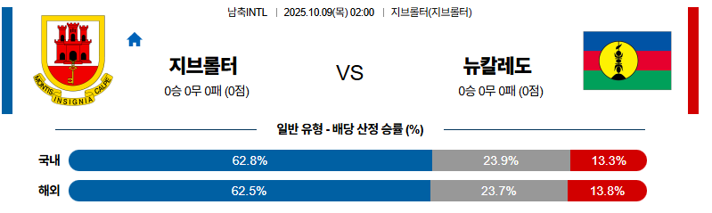 지브롤터 대 뉴칼레도니아 남축INTL 10월09일 맞대결 생중계, 스포츠중계, 스포츠분석