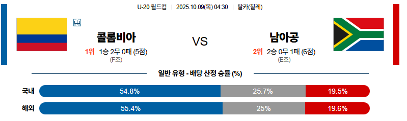 콜롬비아 대 남아공 U20월드컵 10월09일 맞대결 생중계, 스포츠중계, 스포츠분석