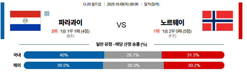 파라과이 대 노르웨이 U20월드컵 10월09일 맞대결 생중계, 스포츠중계, 스포츠분석