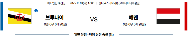 브루나이 대 예멘 아시안컵예선전 10월09일 맞대결 생중계, 스포츠중계, 스포츠분석