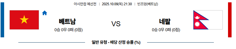 베트남 대 네팔 아시안컵예선전 10월09일 맞대결 생중계, 스포츠중계, 스포츠분석