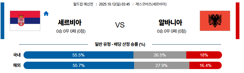 세르비아 대 알바니아 월드컵예선전 10월12일 맞대결 생중계, 스포츠중계, 스포츠분석