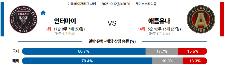 인터마이애미 대 애틀랜타 메이저리그사커 10월12일 맞대결 생중계, 스포츠중계, 스포츠분석