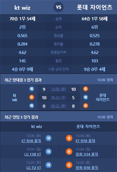 롯데 KT 분석 10월7일 KBO 야구분석 스포츠중계 무료분석