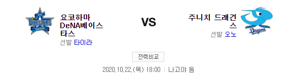 주니치 드래건스 VS 요코하마 DeNA베이스타스