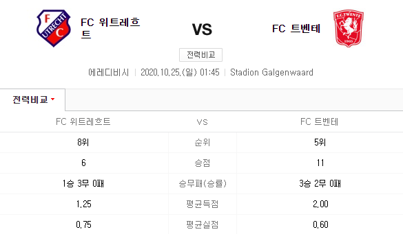 위트레흐트 트벤테 10월25일 에레디비시 축구분석 스포츠중계 무료분석