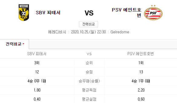 비테세 PSV아인트호벤 10월25일 에레디비시 축구분석 스포츠중계 무료분석