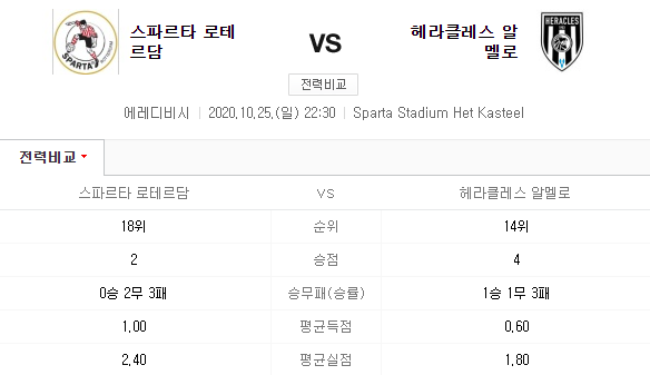 스파르타로테르담 헤라클레스 10월25일 에레디비시 축구분석 스포츠중계 무료분석