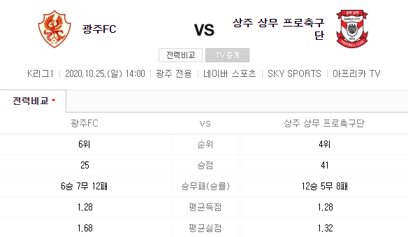 광주FC 상주상무 10월25일 K리그 축구분석 스포츠중계 무료분석