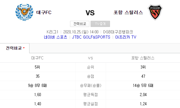 대구FC 포항스틸러스 10월25일 K리그 축구분석 스포츠중계 무료분석