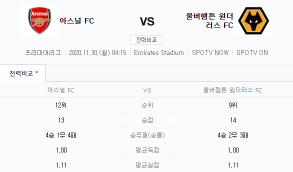 아스날 울버햄튼 분석 11월30일 프리미어리그 축구분석 스포츠중계 무료분석