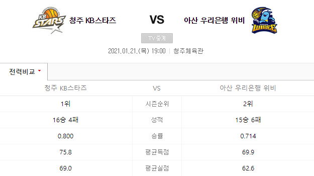 청주 KB 스타즈 VS 아산 우리은행 위비
