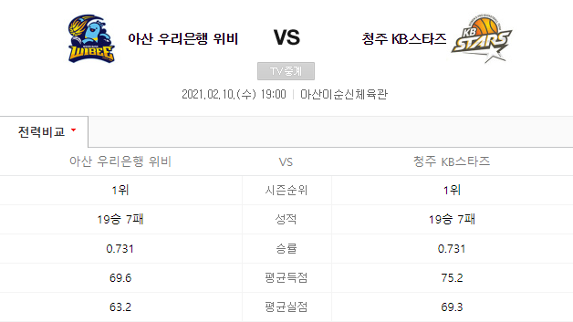 우리은행은 현재 리그 1위에 위치하고 있으며 이전 삼성생명과의 경기에서 65:59로 승리를 기록