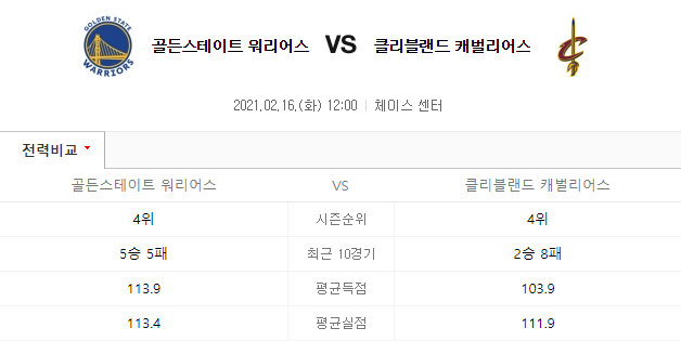 골든스테이트 클리블랜드 분석 2월16일