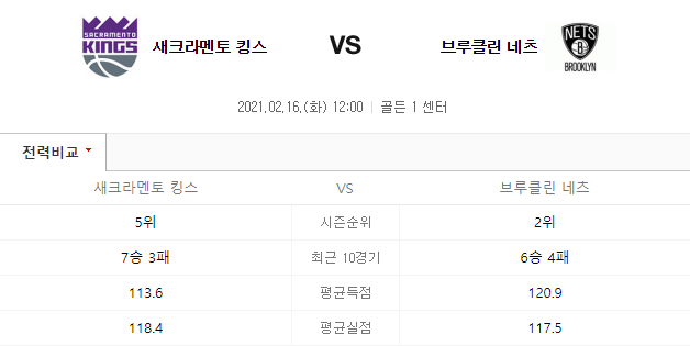 새크라맨토 브루클린 2월16일 NBA 농구분석 스포츠중계 무료분석