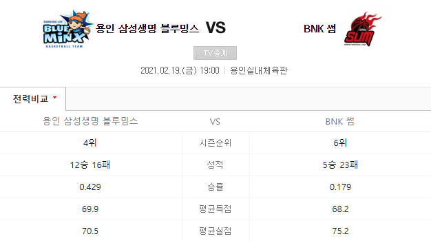 삼성생명 BNK썸 분석 2월19일