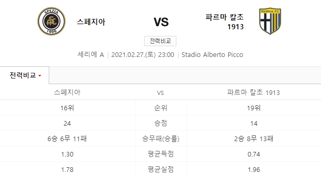 스페치아 파르마 2월27일 세리에A 축구분석 스포츠중계 무료분석