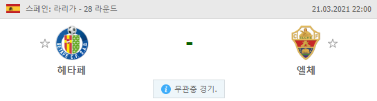 헤타페 엘체 3월21일 라리가 축구분석 스포츠중계 무료분석