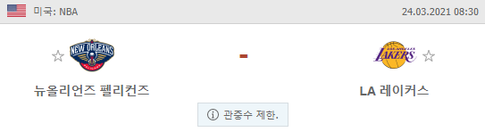 뉴올리언즈 LA레이커스 3월24일 NBA 농구분석 스포츠중계 무료분석