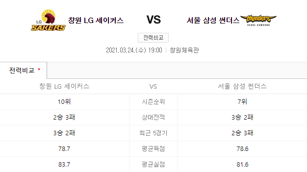 창원LG 서울삼성 분석 3월24일