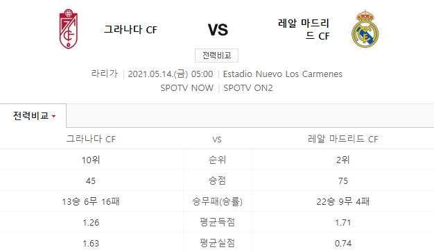 출처 - 그라나다 레알마드리드 분석 5월14일 라리가 #베픽 라이브스코어